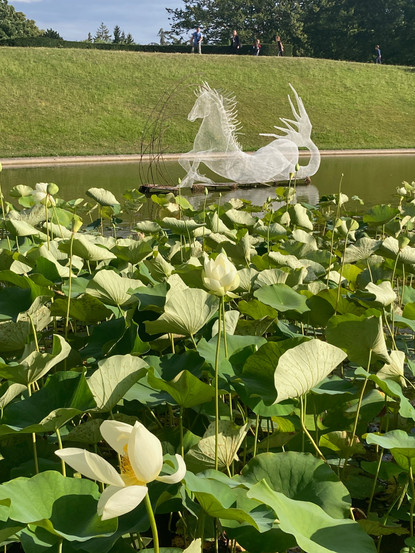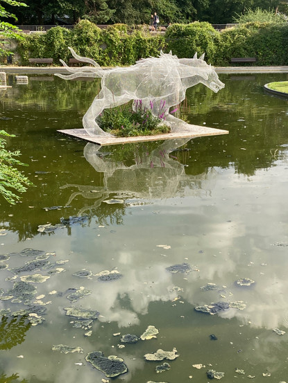 Quelle merveille que de découvrir les sculptures magnifiques de Daniela Capaccioli au Parc Floral de Vincennes, « Formes de l’invisible » ! Ces œuvres incroyables, figures mythologiques humaines ou animales, aux formes transparentes, quasi irréelles, presque magiques, nous font cheminer et rêver, au milieu de ce jardin déjà extraordinaire qu’est le Parc Floral ! Une quarantaine d’œuvres sont exposées au milieu de la nature, sur de petits étangs… et tout le jeu, comme une chasse aux trésors est de partir à la recherche du Centaure, du Cerbère, des dieux et petites fées cachés au détour d’un rocher ou d’un bosquet. J’y suis allée une 2ème fois pour en découvrir d’autres, mais vais devoir y retourner car j’en ai encore manqué une, celle du mentor, du dieu perché dans son arbre !